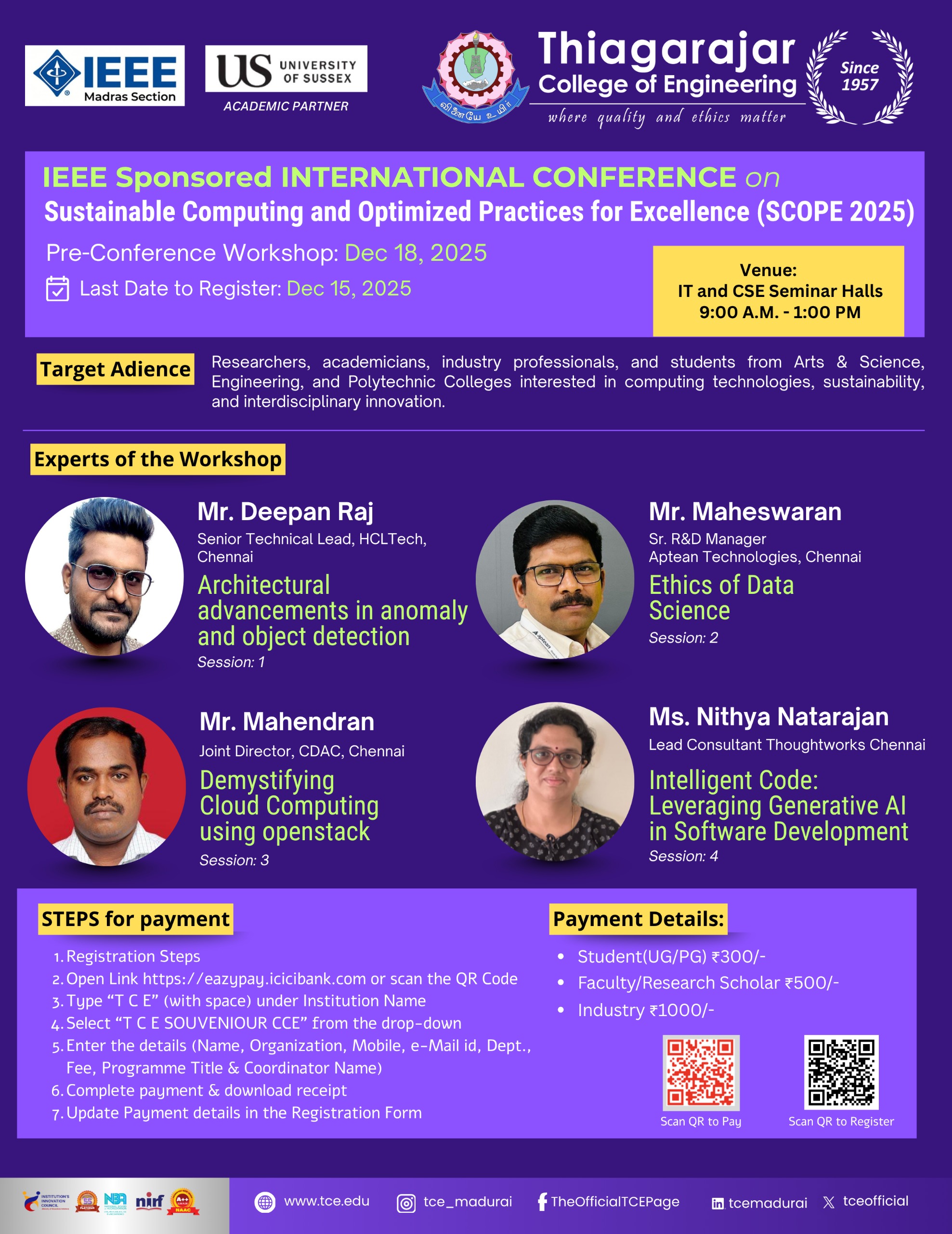 SCOPE 2025 invites full-length original research contributions from professionals from industries, R&D organizations, academic institutions, government departments, and research scholars from across the country.
